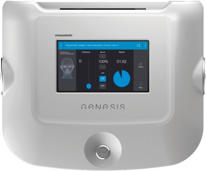O Genesis da Mesoestetic é um equipamento médico-estético multitecnológico que combina tecnologias como radiofrequência, eletroporação e LED para tratamentos faciais e corporais, promovendo a firmeza, tonificação e rejuvenescimento da pele, estimulando colagénio e elastina, com resultados visíveis desde a primeira sessão. A sua inovação reside na tecnologia SmartDrivity, que otimiza a resposta biológica dos tecidos.